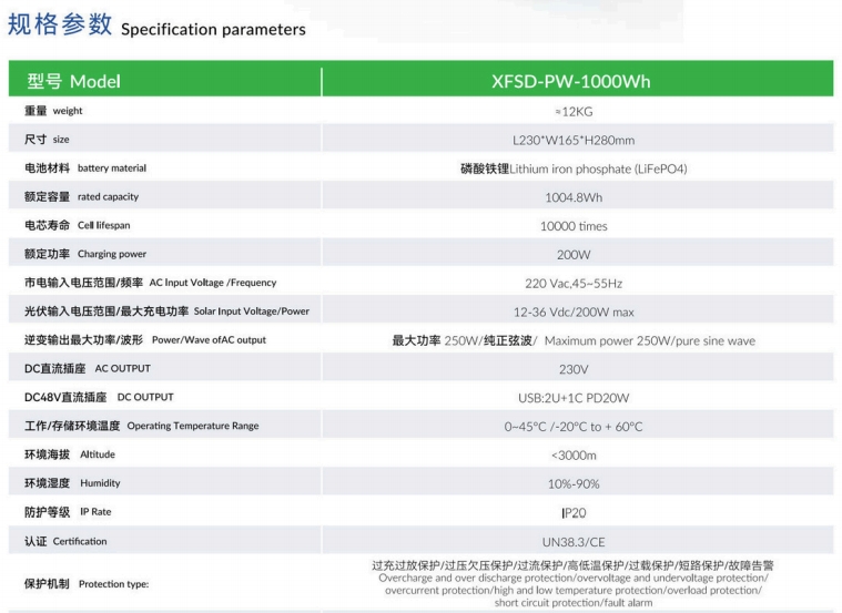 पोर्टेबल एनर्जी स्टोरेज बॅटरीचे उत्पादन तपशील